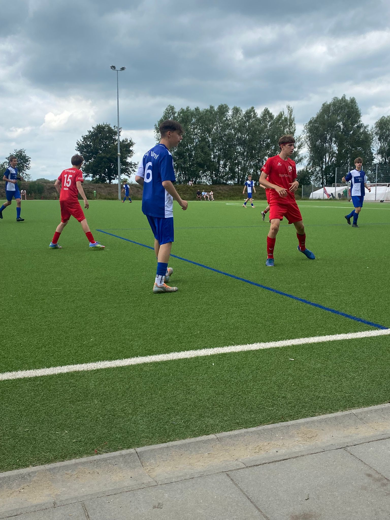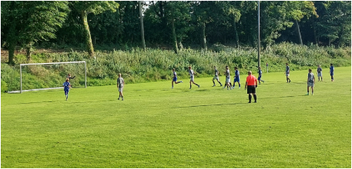 Am 14.7: Wir starten mit der Vorbereitungen auf die kommende B-Jugend Saison. Mit allen Jungs der Jahrgänge 2009 und 2010 werden wir 3x wöchentlich trainieren und jeweils 1 Freundschaftsspiel bestreiten. Zum Auftakt kamen 22 Jungs von möglichen 36. Leider zur Ferienzeit normal, aber alle die da waren haben ordentlich mitgemacht und haben aufmerksam den gesteckten Zielen gelauscht, welche der Wiederaufstieg der B1 Mannschaft in die Bezirksliga bedeutet und für die B2 oben mitspielen und mal gucken ob noch mehr geht sind. Die Kader Zusammenstellung steht noch nicht fest, jeder hat seine Chance sich für die jeweilige Mannschaft zu empfehlen. Nach der ersten intensiven Woche ging es nach Cloppenburg zum Leistungsvergleich gegen C-Jugend Mannschaften vom Blumenthaler SV (Regionalliga) und JFV Cloppenburg (Landesliga). Trotz des Altersunterschied zeigten diese beiden Mannschaften das sie sich auf einem ganz anderen Level befinden und Physisch und spielerisch schon so weit sind wie wir als B-Jugend. Dementsprechend anstrengend war der Tag auch für alle Beteiligten 19 Jungs. Positionen wurden erprobt und die neue Zusammenstellung erschwerten zu Beginn die Abläufe, zeigte uns aber einige Erkenntnisse. Gegen den Blumenthaler SV verloren wir die Partie mit 2:4. Es war viel Stückwerk, aber nicht anders zu erwarten in der Konstellation. Der Einsatz stimmte und eine schöne 70Minütige Einheit. Im anschließenden Spiel gegen JFV Cloppenburg war es schon etwas besser, einige Positionswechsel verbesserten das Spiel und es wurde auch ruhiger gespielt. Man gewann es letztendlich mit 10:5, wobei uns nach hinten raus die Konzentration fehlte und sich unnötige Fehler einschlichen. Man merkte hier schon wie fit die beiden höher Klassigen Mannschaften waren. Aber das ist für uns kein Problem, wir sind ja erst gestartet.