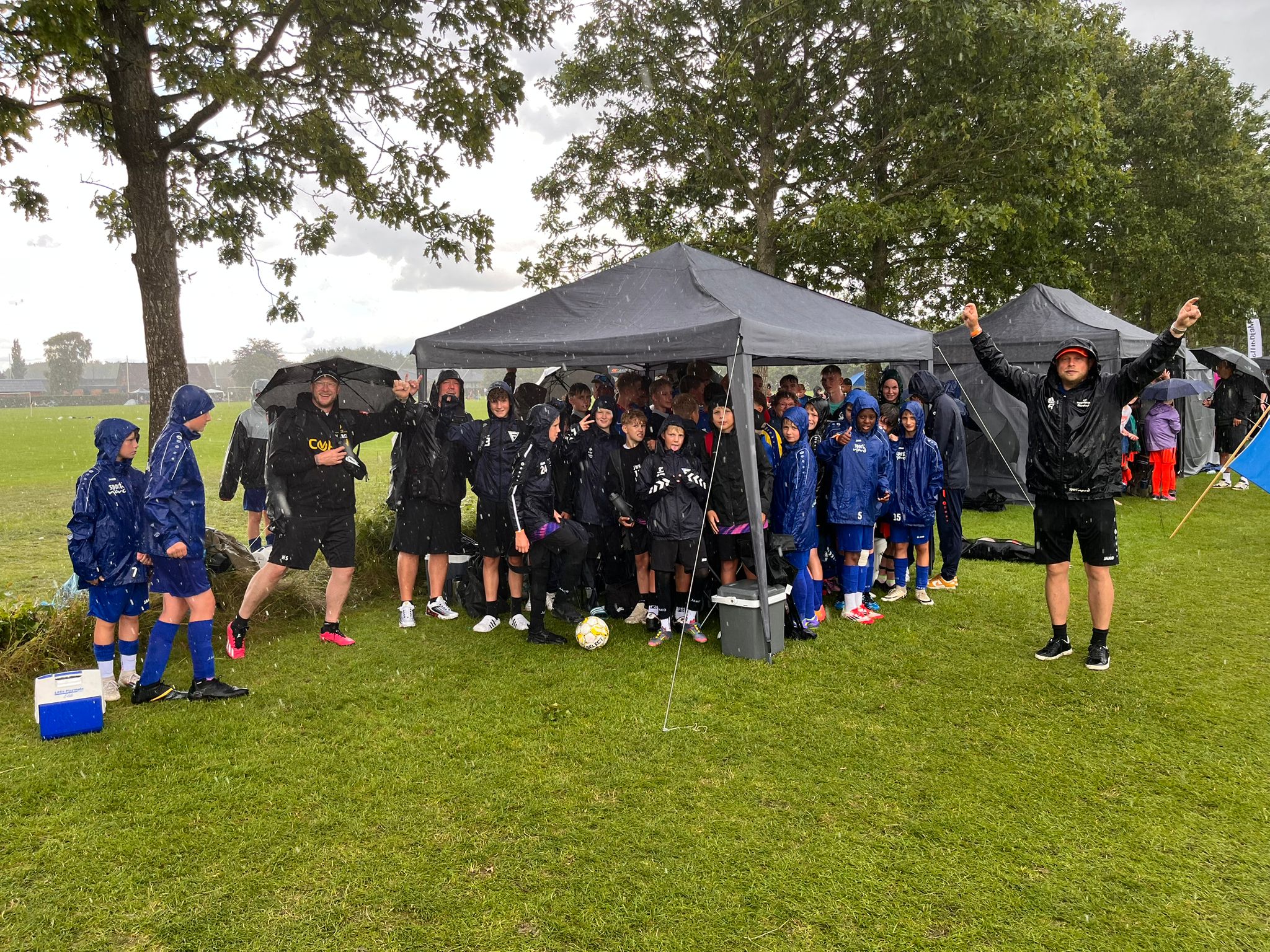 Dieses Jahr war das Wetter wieder etwas durchwachsen, sodass ein heftiger Schauer am Freitagnachmittag einiges durcheinander warf und Spiele ausfielen ließ. Dadurch hatten einige Mannschaften einen Nachteil und es konnte nachher keiner mehr sicher sein das auch die Mannschaften ihrer Stärke nach in den jeweiligen Finalrunden standen. Das war aber auch der einzige große Schauer, es war zwar oft bewölkt, aber dabei blieb es zum Glück auch. Die Laune der Kids war trotzdem gut und es wurde auf anderen Plätzen immer viel von außen unterstützt.